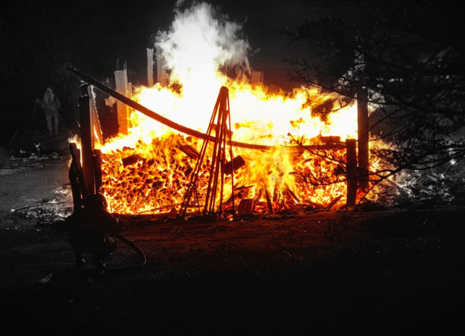 De acordo com o 4º Batalhão Bombeiro Militar, o fogo atingiu um barracão onde era armazenada lenha seca. No local, também havia um buraco utilizado para a queima desse material. A suspeita é de que uma fagulha tenha iniciado o incêndio, favorecida pelo vento forte no momento do ocorrido.