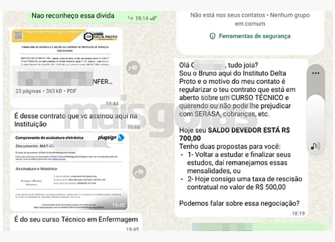 As vítimas relatam que recebem cobranças detalhadas, ameaças de ações judiciais e ataques à reputação, sempre com tom intimidador. Um dos estudantes registrou boletim de ocorrência relatando que, após questionar sua permanência no curso e pedir informações sobre rescisão contratual, passou a receber ligações e mensagens com ameaças e exigência de pagamentos.